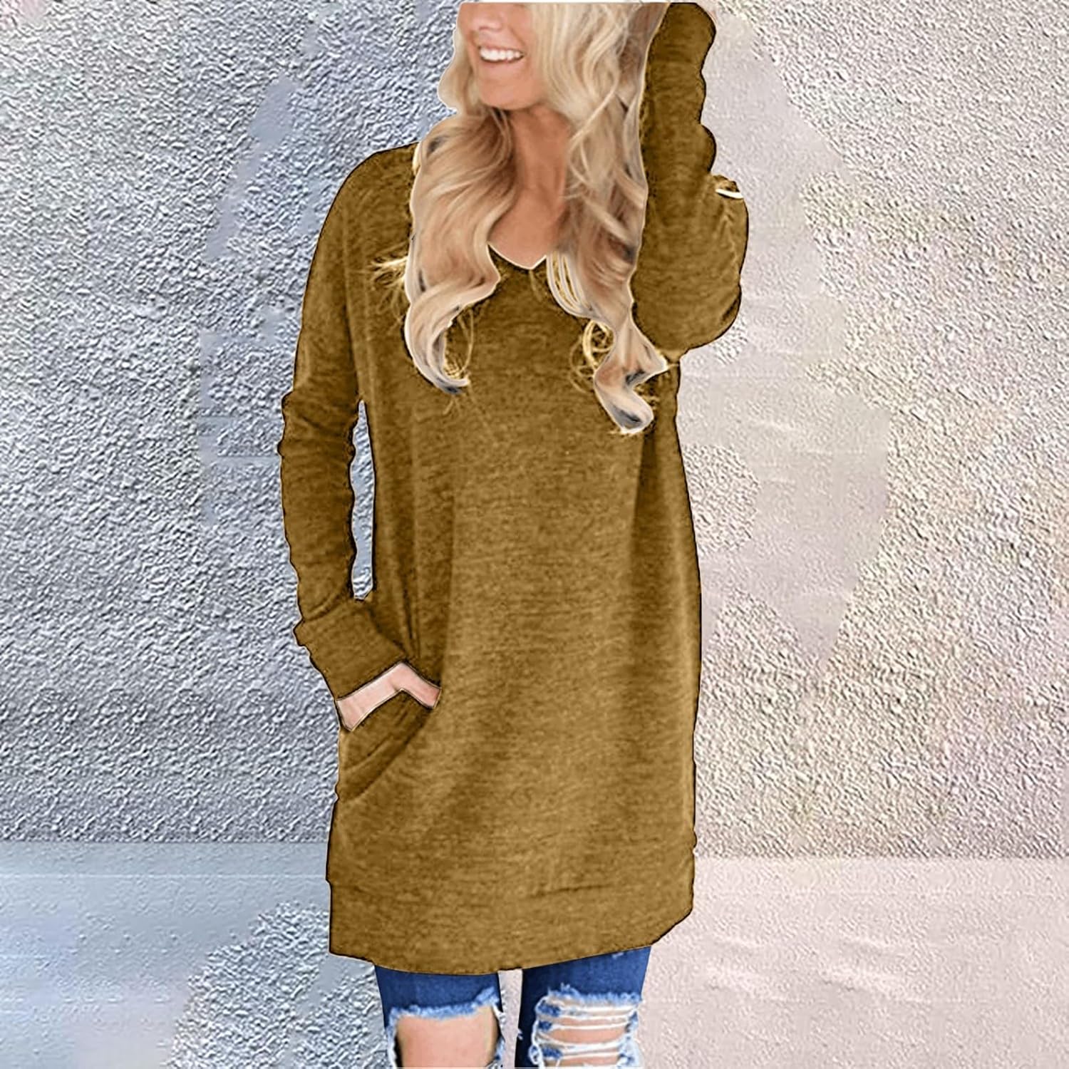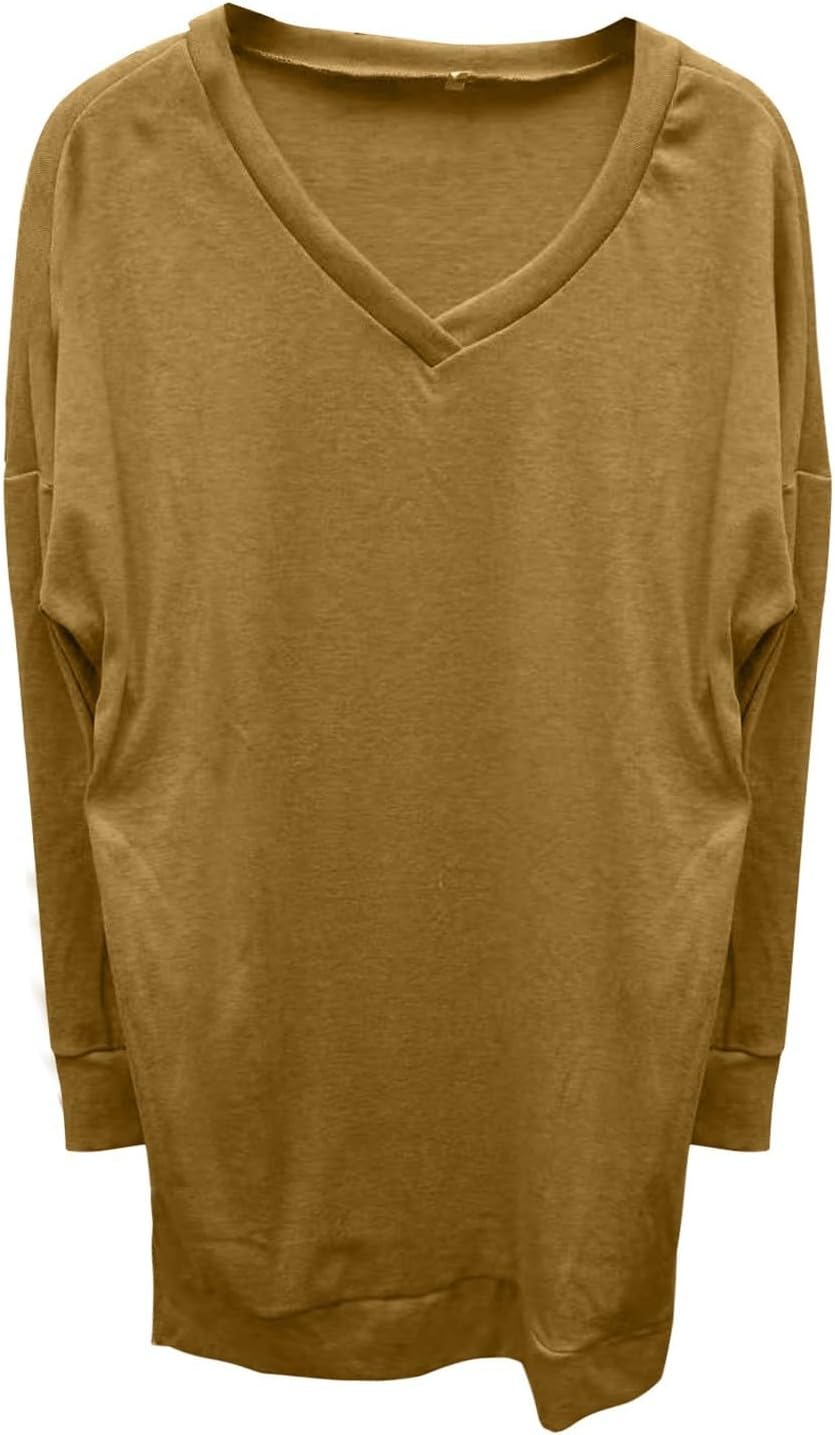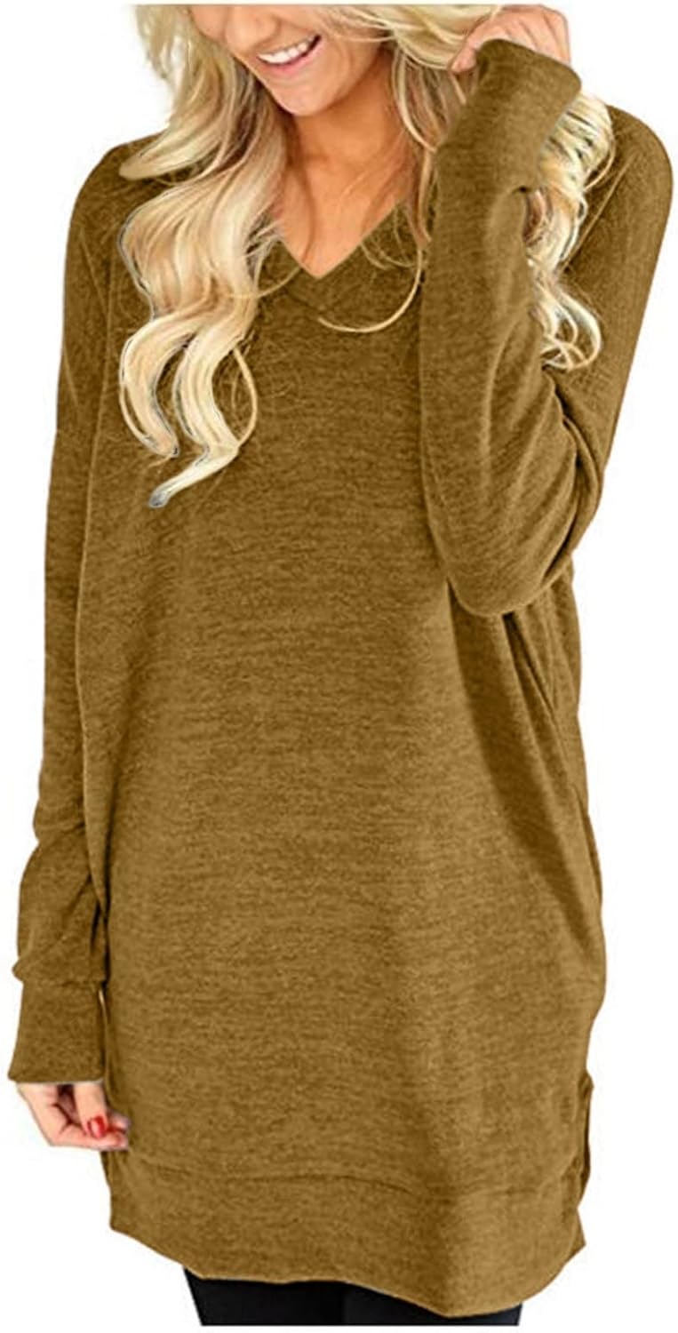 Women's Casual V-Neck Shirts, Solid Color Long Sleeve Blouse…