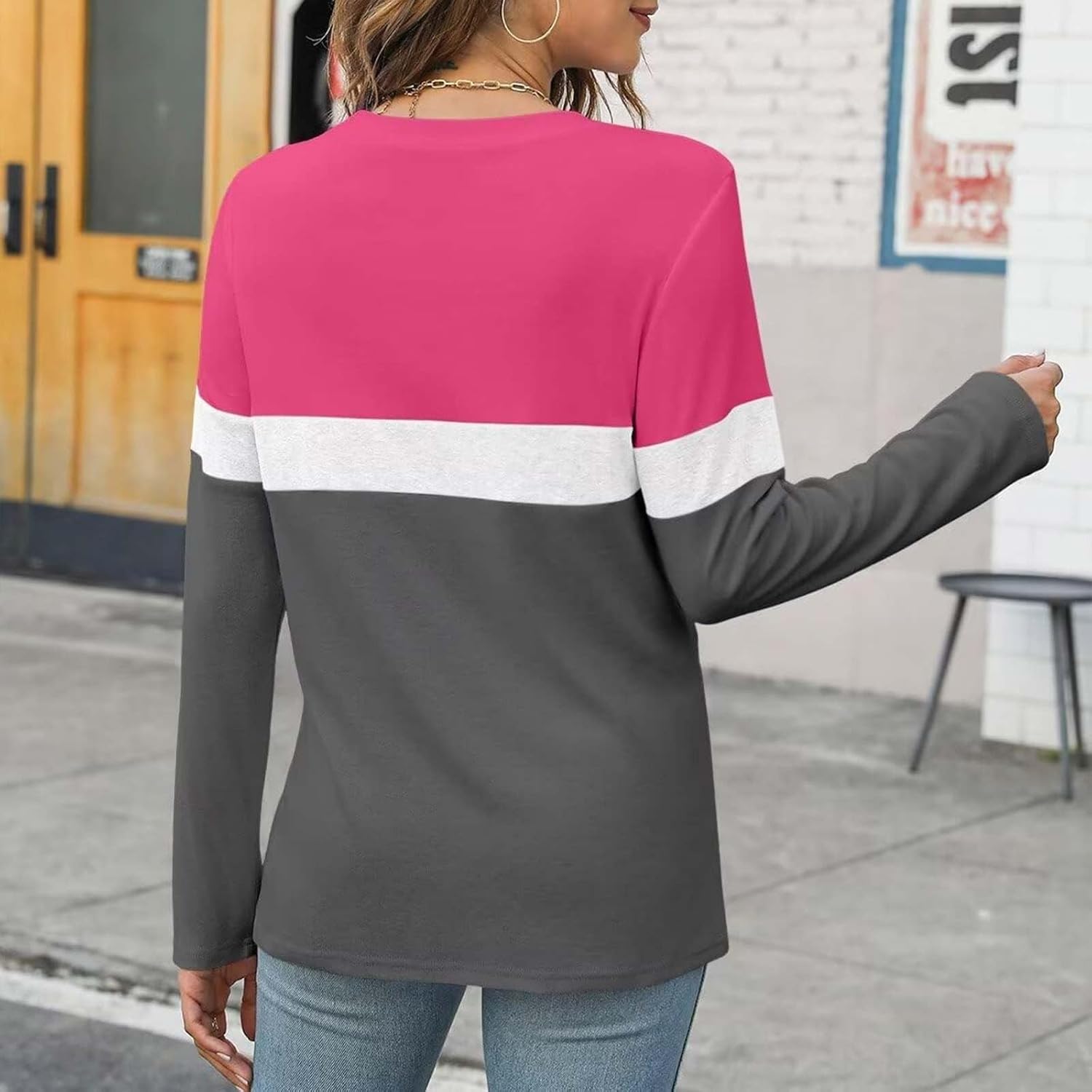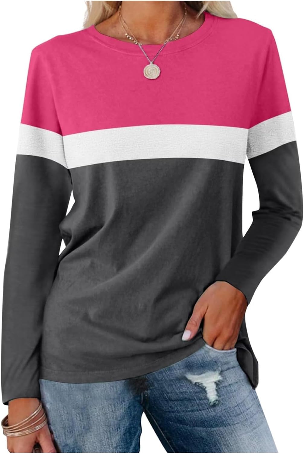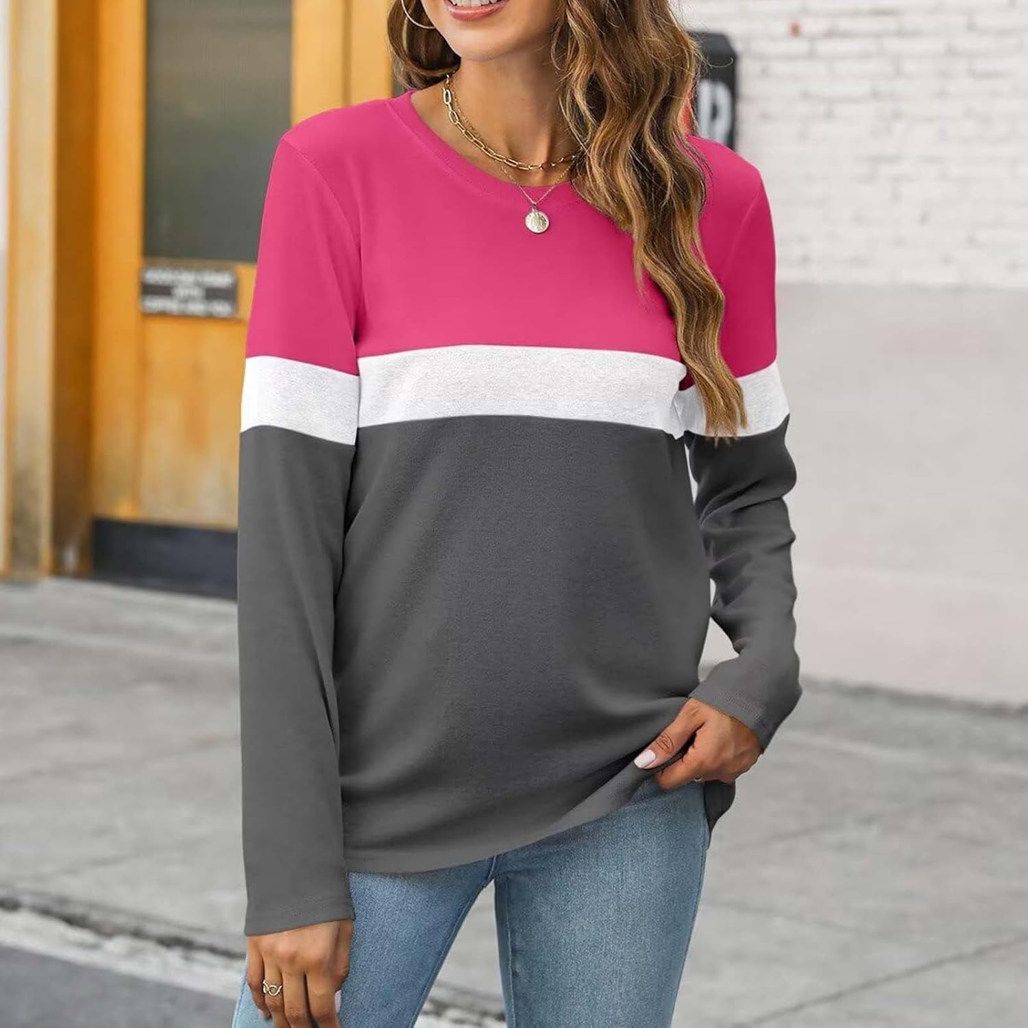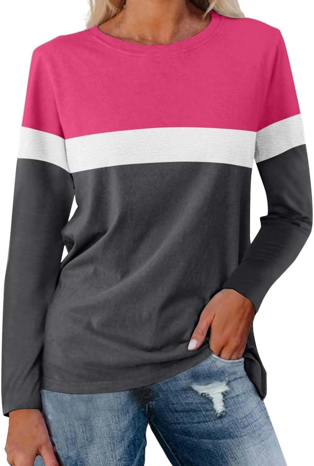 Women's Color Block Tops 2025 Long Sleeve Tunic Tops Shirt C…
