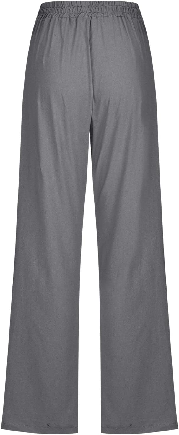 Women's Linen Capri Pants, Summer Casual Drawstring Elastic Waist Wide Leg Straight Linen Pants with Pockets