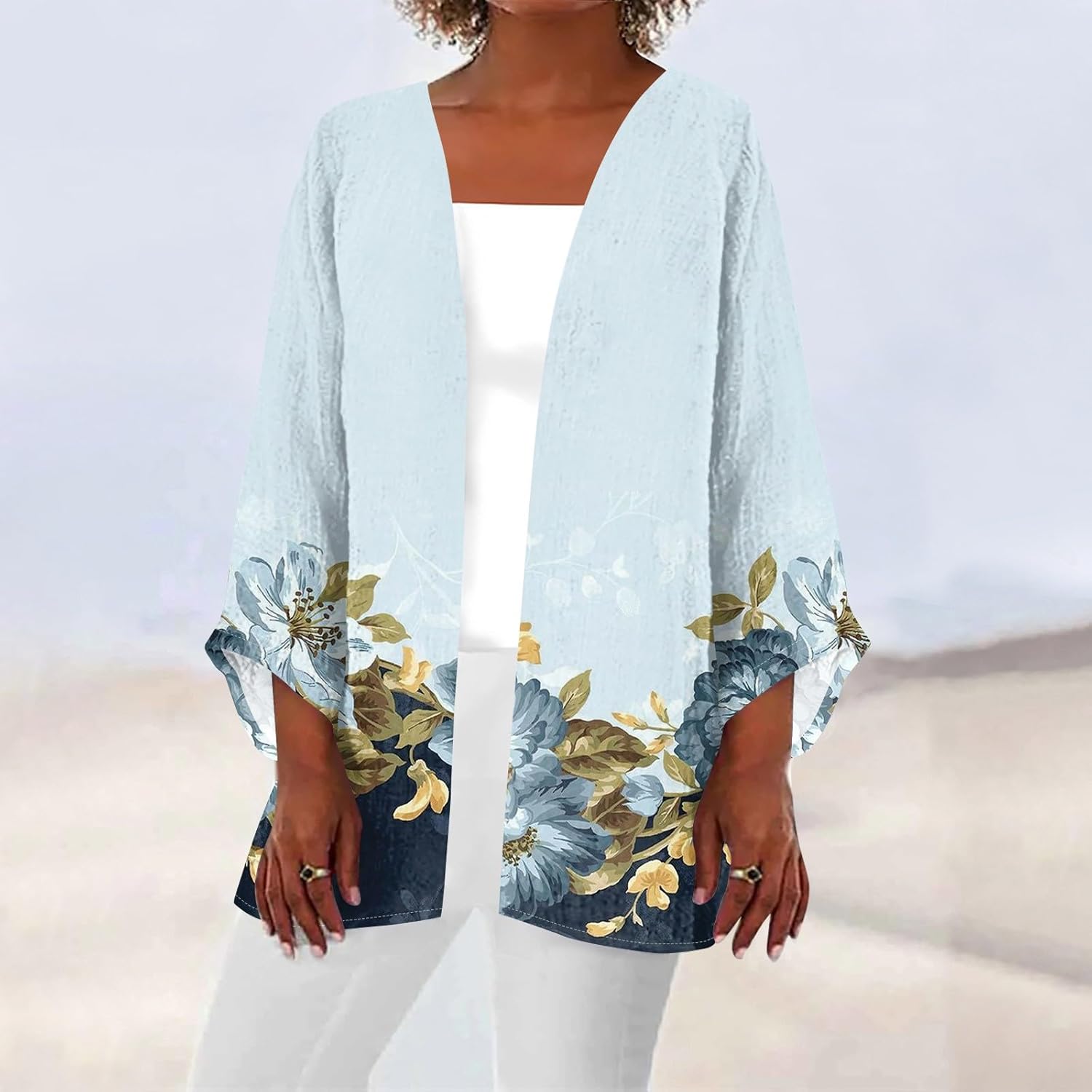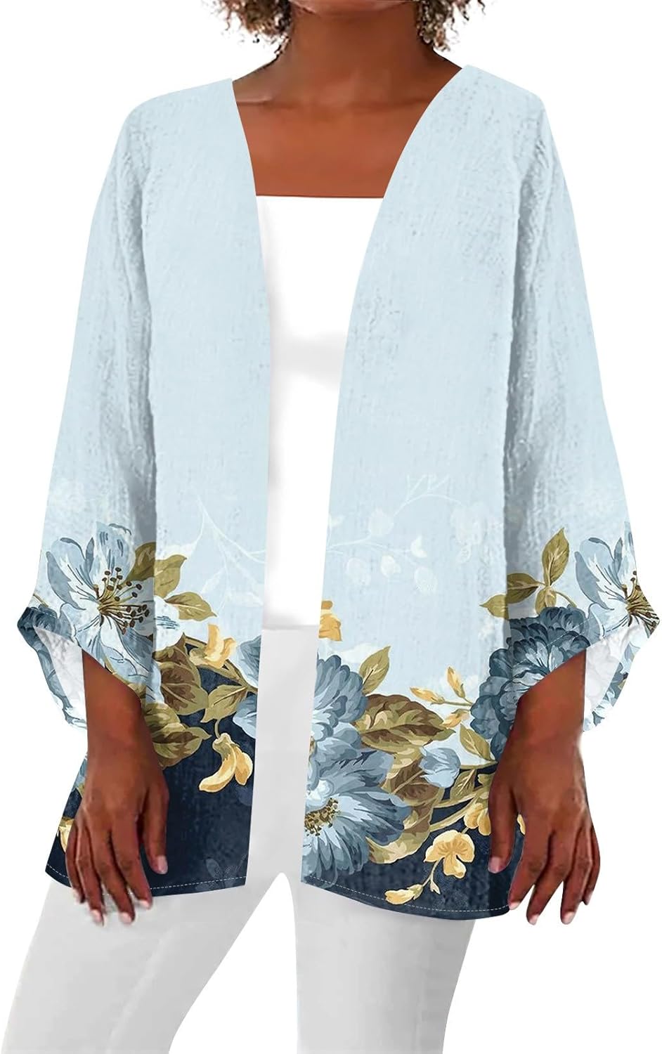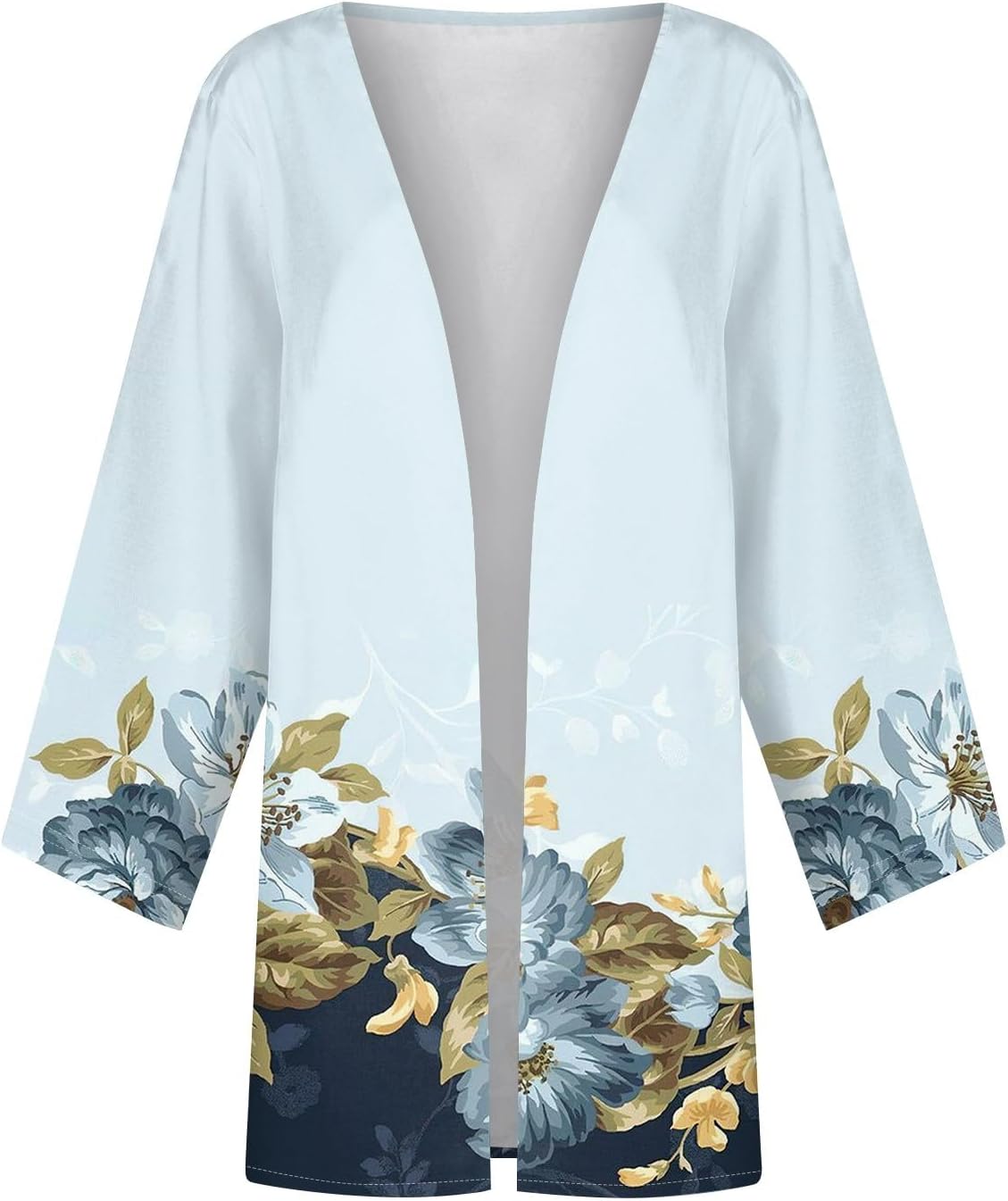 Women's Casual Oversized Cardigan 3/4 Sleeve Autumn Comfy Printed Coats for Women