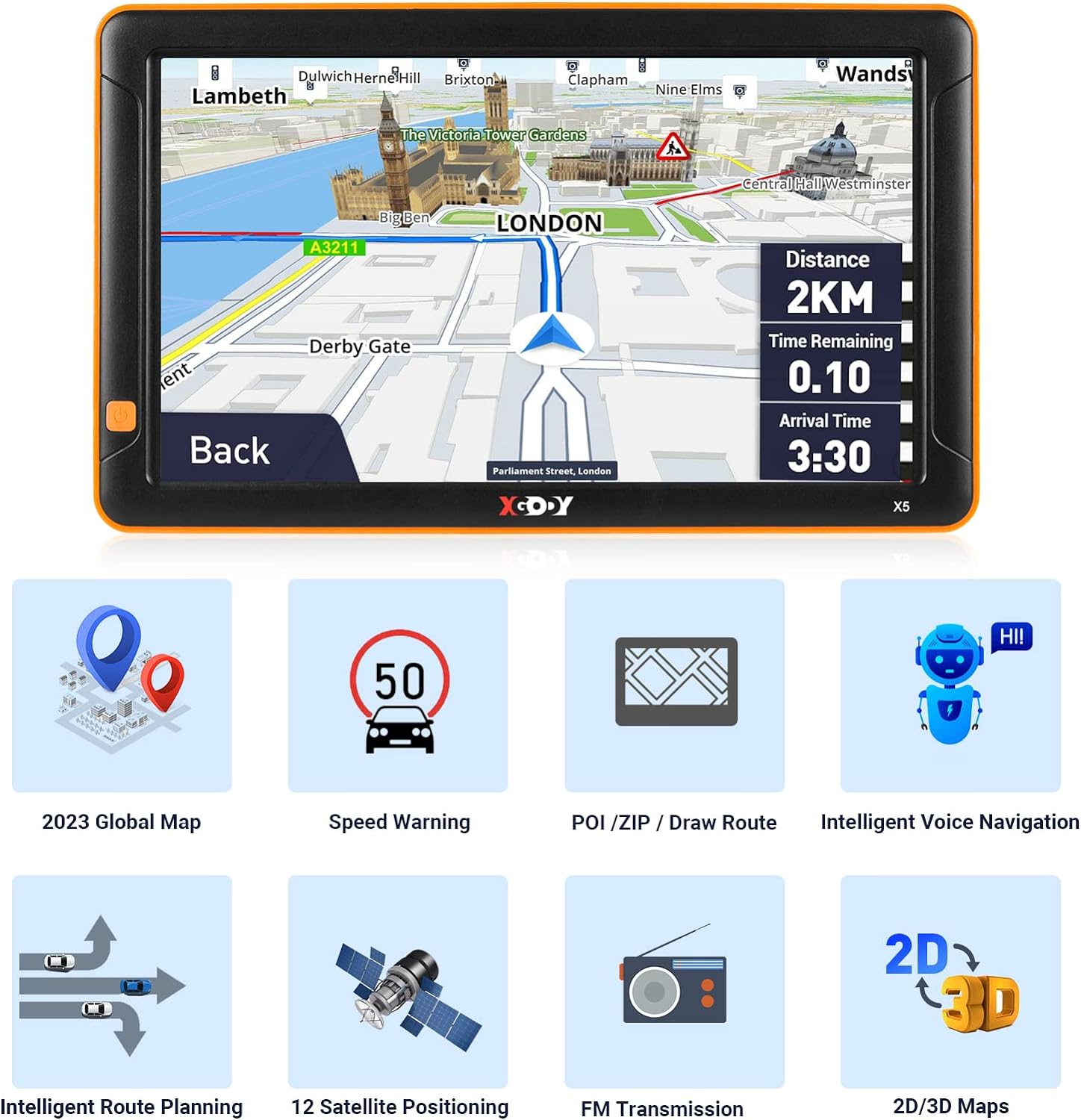 Introducing the best touch screen experience with our next-generation capacitive screen technology. Say goodbye to the frustrating delays and inaccuracies of traditional touch screens and welcome a whole new world of precision and speed. Lifetime Map Updates: 2D/3D map views, no internet connection required, ready to use, all North American country maps are already pre-installed. Multilingual: Our GPS navigation system is designed to support multiple languages, making it the perfect choice for multilingual travelers and households. The easy-to-use interface and voice-guided instructions can be customized to your preferred language, ensuring a hassle-free and enjoyable experience. Vehicle Points of Interest – Explore new places and discover hidden gems with our advanced GPS navigation system that supports vehicle points of interest. With our device, you'll have access to a complete database of points of interest designed specifically for your vehicle, including gas stations, parking lots, restaurants, and more. 7 Inch GPS Navigation with Bracket: Xgody truck navigation sees directions clearly on a bright, sunlight-readable screen. Multimedia: MPEG4, MP3, JPEG, AVI, WMA and other playable formats. 8 GB of RAM (expandable) and 256 MB of RAM. The device supports MicroSD data carriers (up to approx. 32 GB). 7 Vehicle Mode Switching: Experience the versatility and convenience of our advanced GPS navigation system, which supports 7 vehicle mode switching. Whether you're driving a car, truck, motorcycle, or any other vehicle, our device is designed to meet your needs and give you the most accurate and reliable navigation experience possible. Multiple search methods: by zip code, full address, partial address, directory, points of interest, favorite places to visit or previous search history (recent destinations).