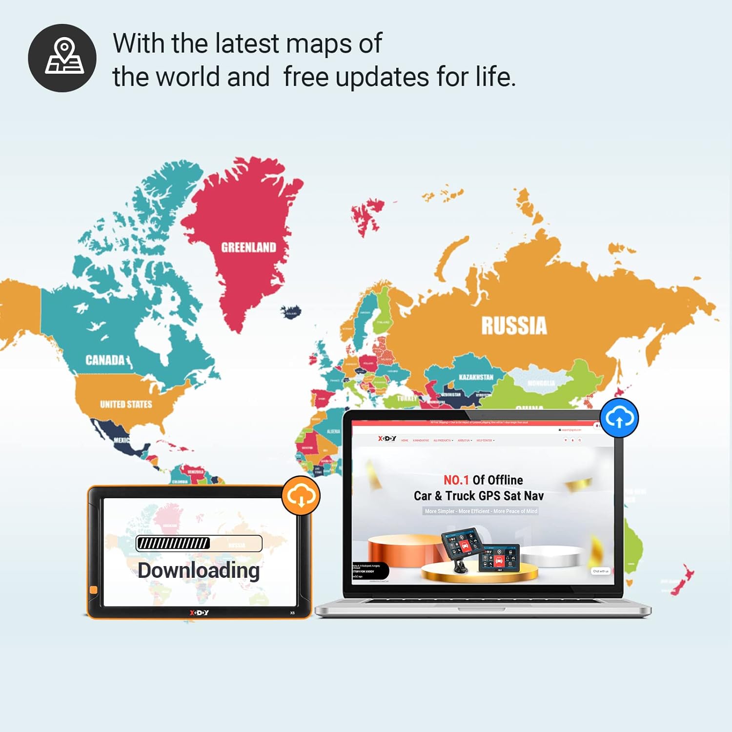 ★【LIFETIME FREE MAPS】XGODY X5 car GPS navigator comes with 2D/3D maps of all Americas, including Argentina, Brazil, Canada, Chile, Colombia, Costa Rica, Mexico and the United States. If you want to update maps or maps of another country, please feel free to email us via Amazon.