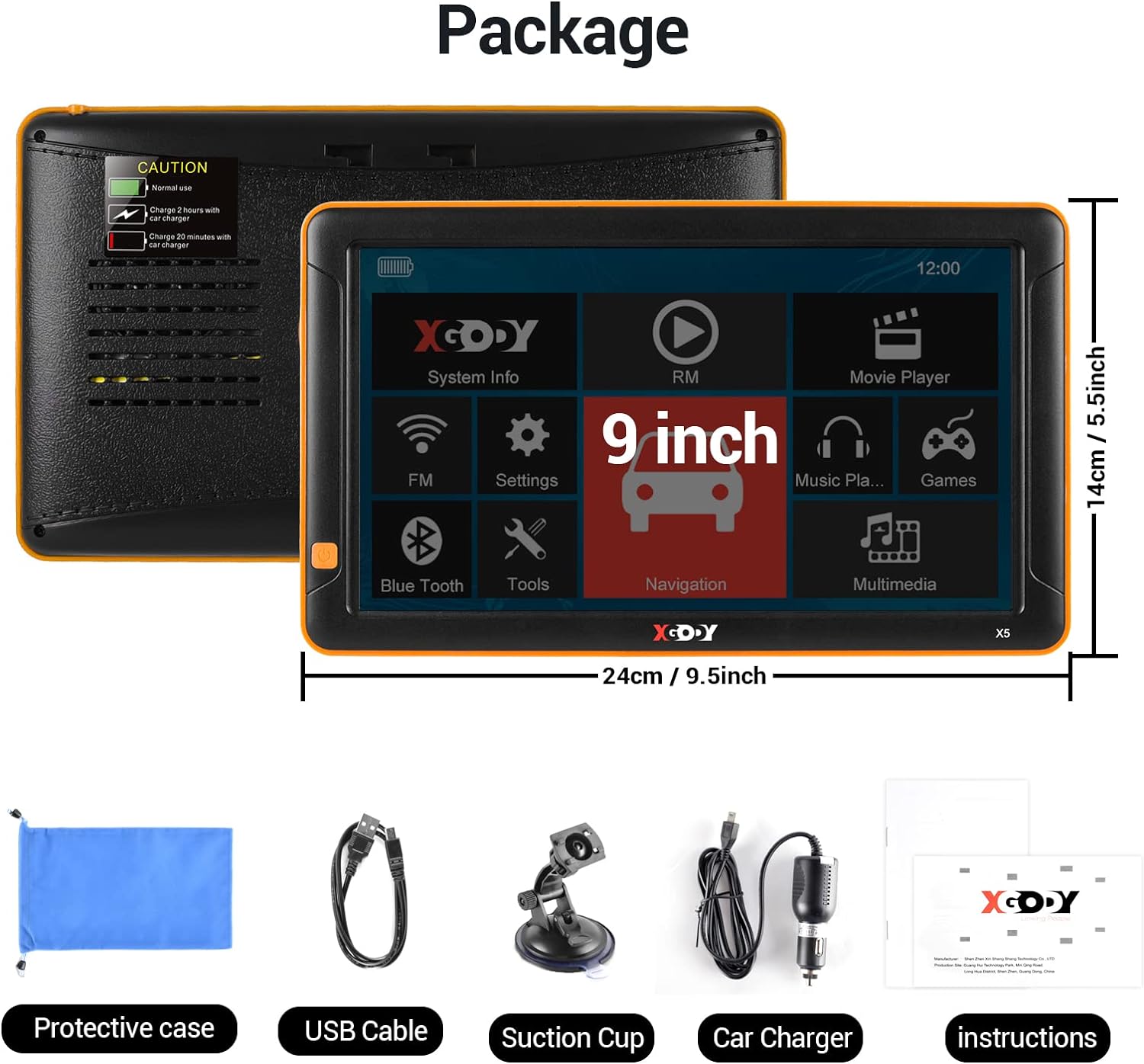 Xgody gps is suitable for all types of vehicles, such as: cars, trucks, bicycles, buses, taxis, etc., as long as the vehicles are 12V to 24V and you can use the XGODY navigation device with confidence.
