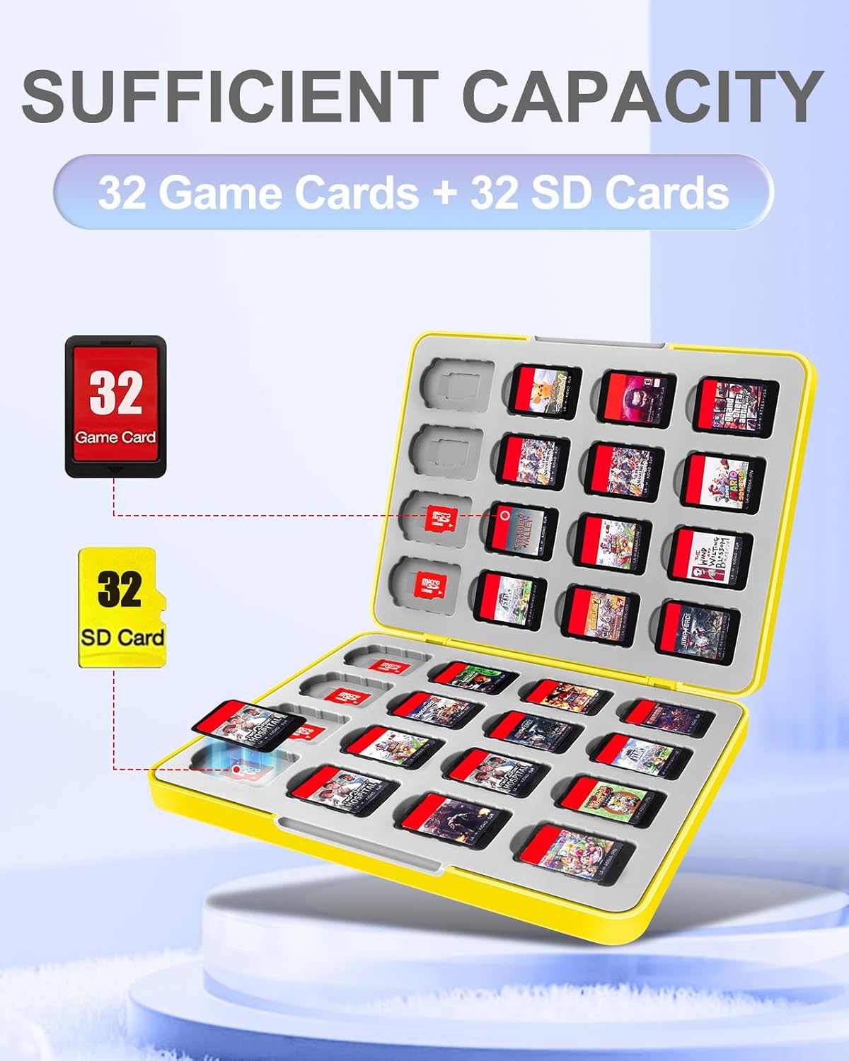 【Great capacity】 This case card support case could store all your favorite for games of change in one case, keep up to 32 for switch game cartridge and 32 micro SD cards (excluding games).