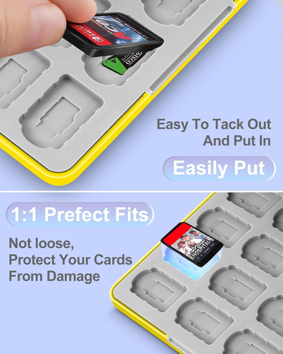 【Complete protection】 The exterior hard housing is made of high quality ABS material, which is waterproof, dustproof, shock -proof, scratch -proof, resistant and durable, effectively protecting the switch game card for the impact and fall. Protector is made of soft silicon coating material, a precise position of the card, ensures that the for switch cards remain in the place without sliding, which offers great protection for Nintendo Switch Lite game cards.