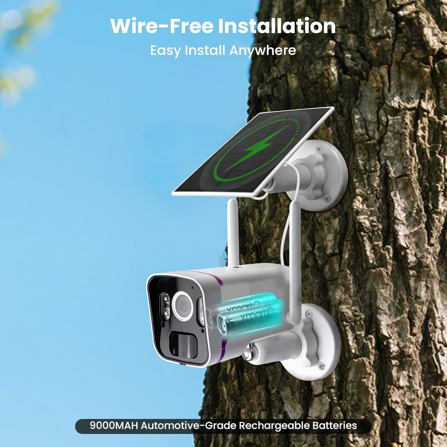 Solar energy without stopping: rechargeable batteries of automotive degree of 9000 mAh of large capacity store a power more than enough, and solar panels replenish energy every day, regardless of whether it is sunny, rainy or snowy. Technology for all climate maintains the cameras that work with energy without stopping even in winter, saving the problems of knocking down cameras for the recharge. You can also use a 5V phone charger to keep the camera plugged in and work with monitoring 24 hours a day, 7 days a week, protecting its loved ones and beings.