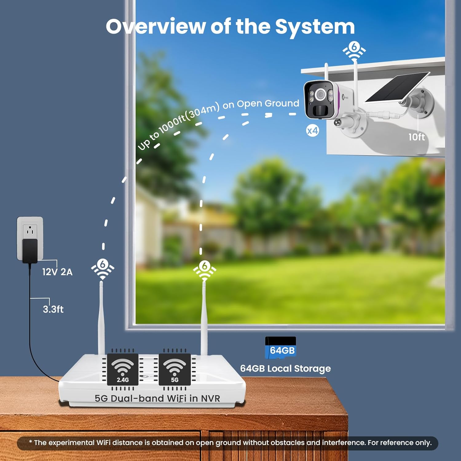 5G long-range Wi-Fi 6 for larger coverage: home security cameras while evaluating in open ground, the excellent Wi-Fi performance allows the cameras to work well even when they are up to 1300 feet (400 m) of the NVR. Although this distance will weaken through the walls, even so, Wi-Fi's performance is good enough to cover most of the types of houses, stores or even offices, which gives you the flexibility of mounting the cameras where you want them.