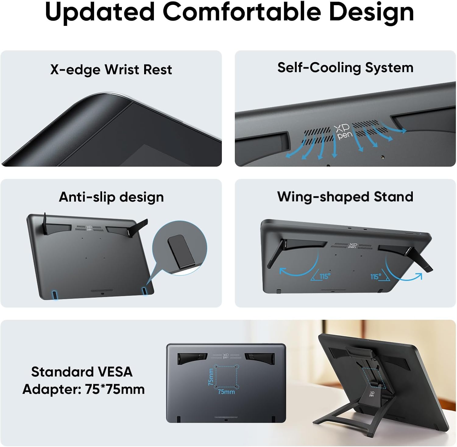 Simplified configuration and flexibility: the USB-C connections of double reversible simplify the installation and admit the HDMI input. This design allows professional artists to change effortlessly between devices such as MacBooks, laptops of Windows and tablets without compatibility problems. Both USB-C cables can connect their drawing screen to their laptop or tablet, reducing the need for multiple cables and helping to maintain their organized desk. In addition, the standard vesa adapter (75×75 mm) offers versatile assembly options, while wing -shaped support guarantees a stable location