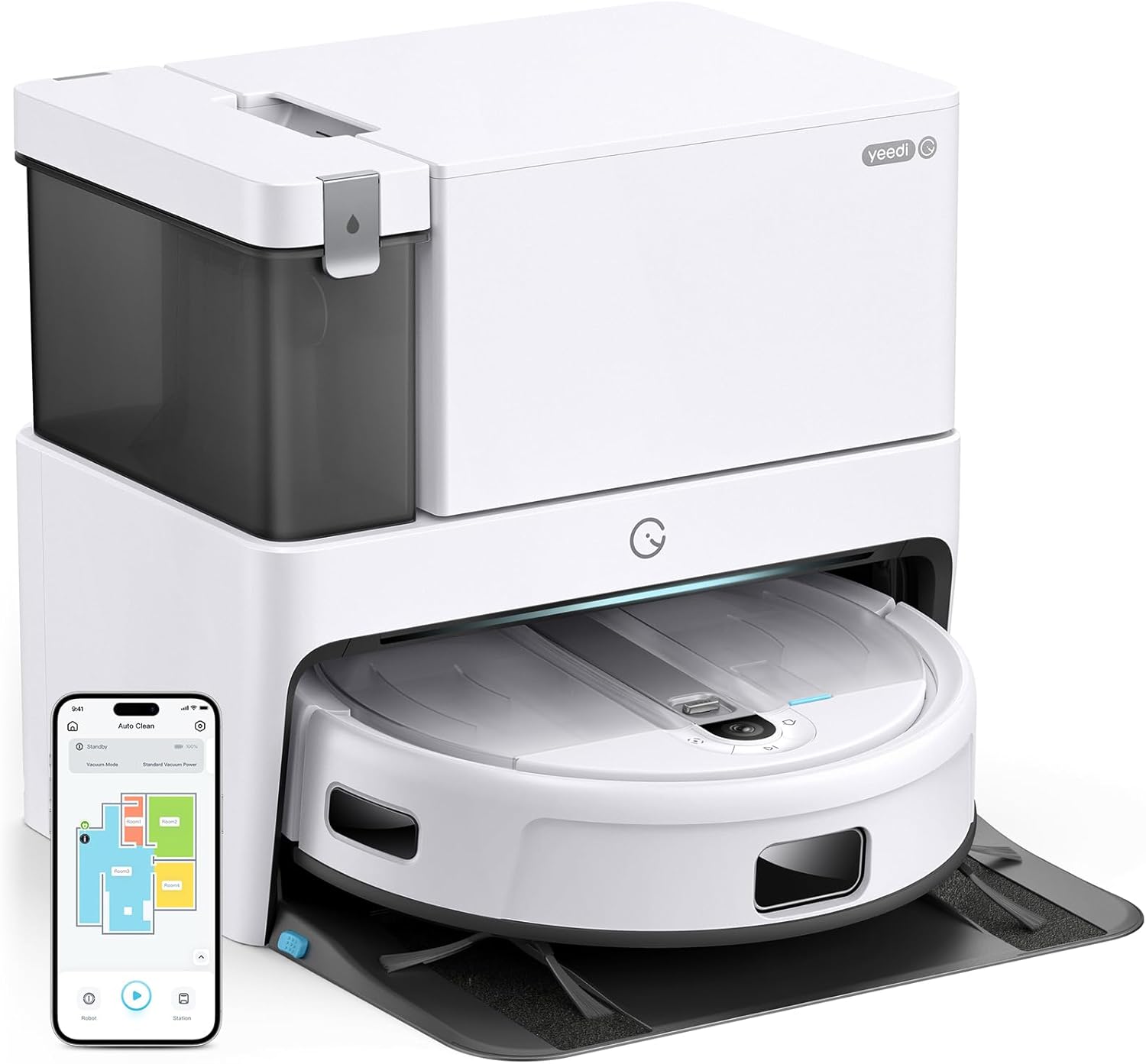ALL-IN-ONE ROBOT VACUUM CLEANER: Here comes the MOST AFFORDABLE ALL-IN-ONE robot vacuum cleaner. It features AUTO MOP & VACUUM, AUTO DRY & WASH, auto emptying and auto cleaning. Yeedi Cube can free you from daily cleaning chores. All you have to do is relax and let Yeedi Cube take care of the mess.