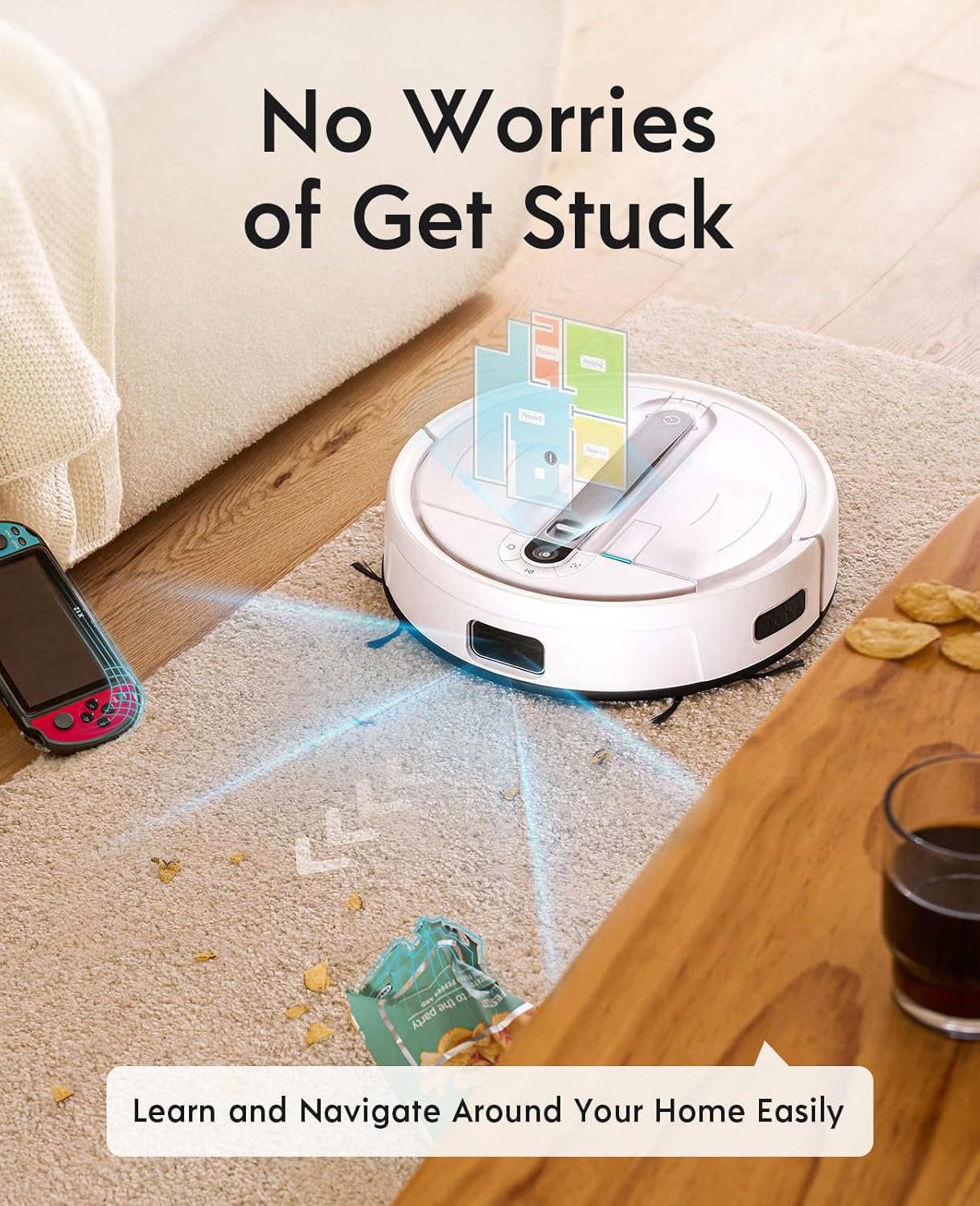 VISUAL NAVIGATION & LASER FUSION: The robot vacuum and mop now have a better ability to get out of stuck situations.