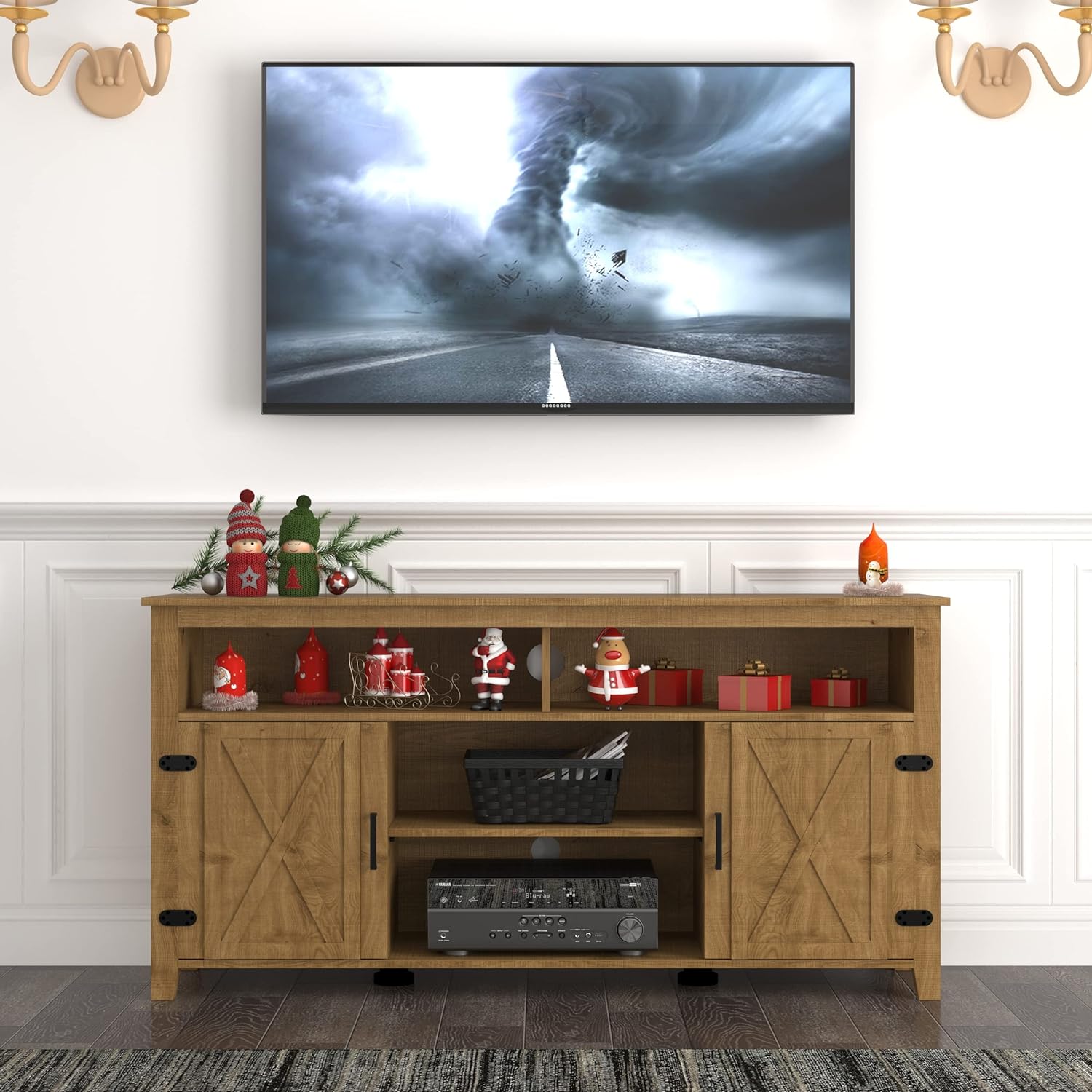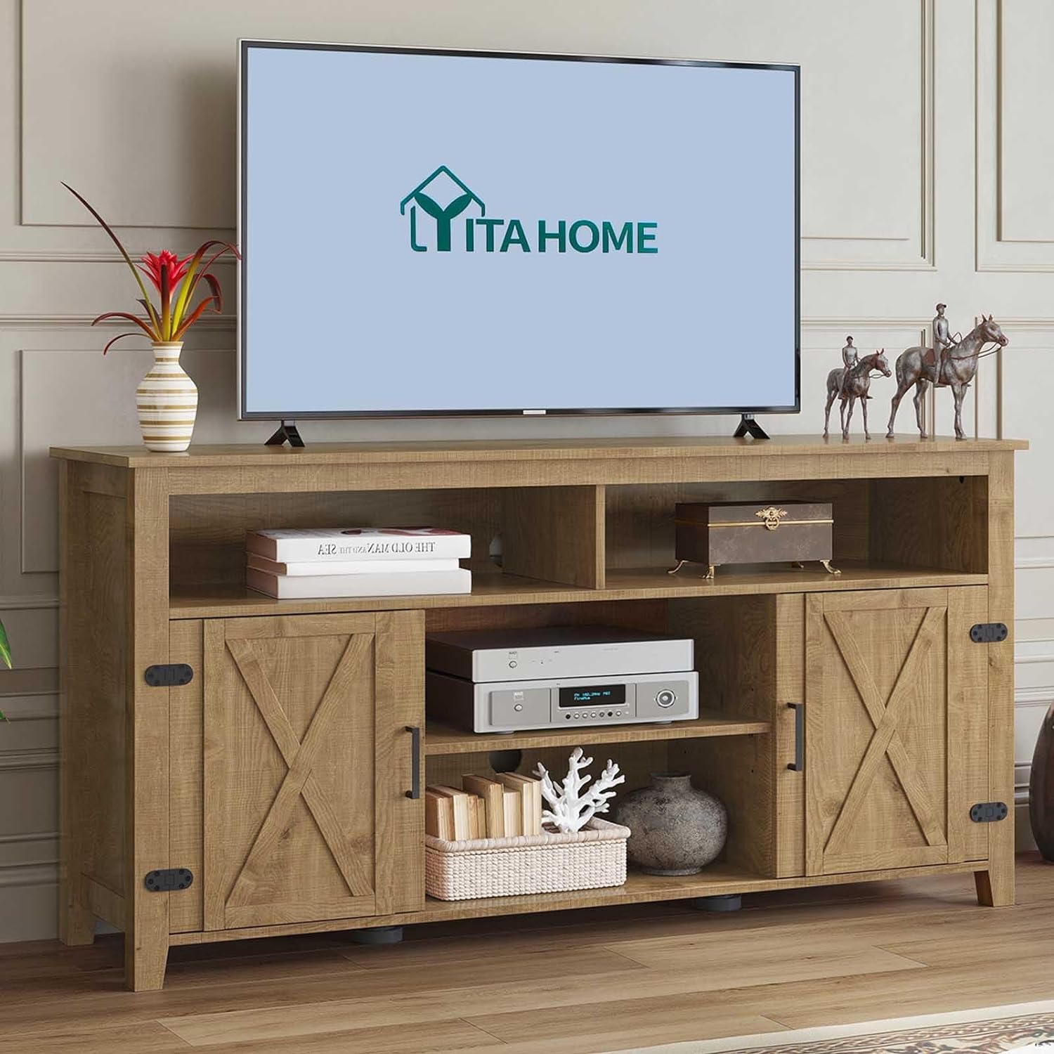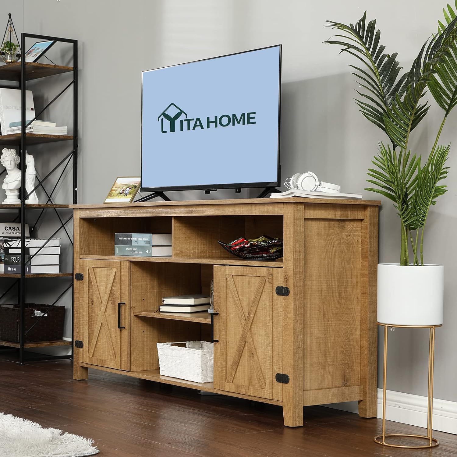 YITAHOME Highboy Farmhouse Barn Door TV Stand for 65″ TV…