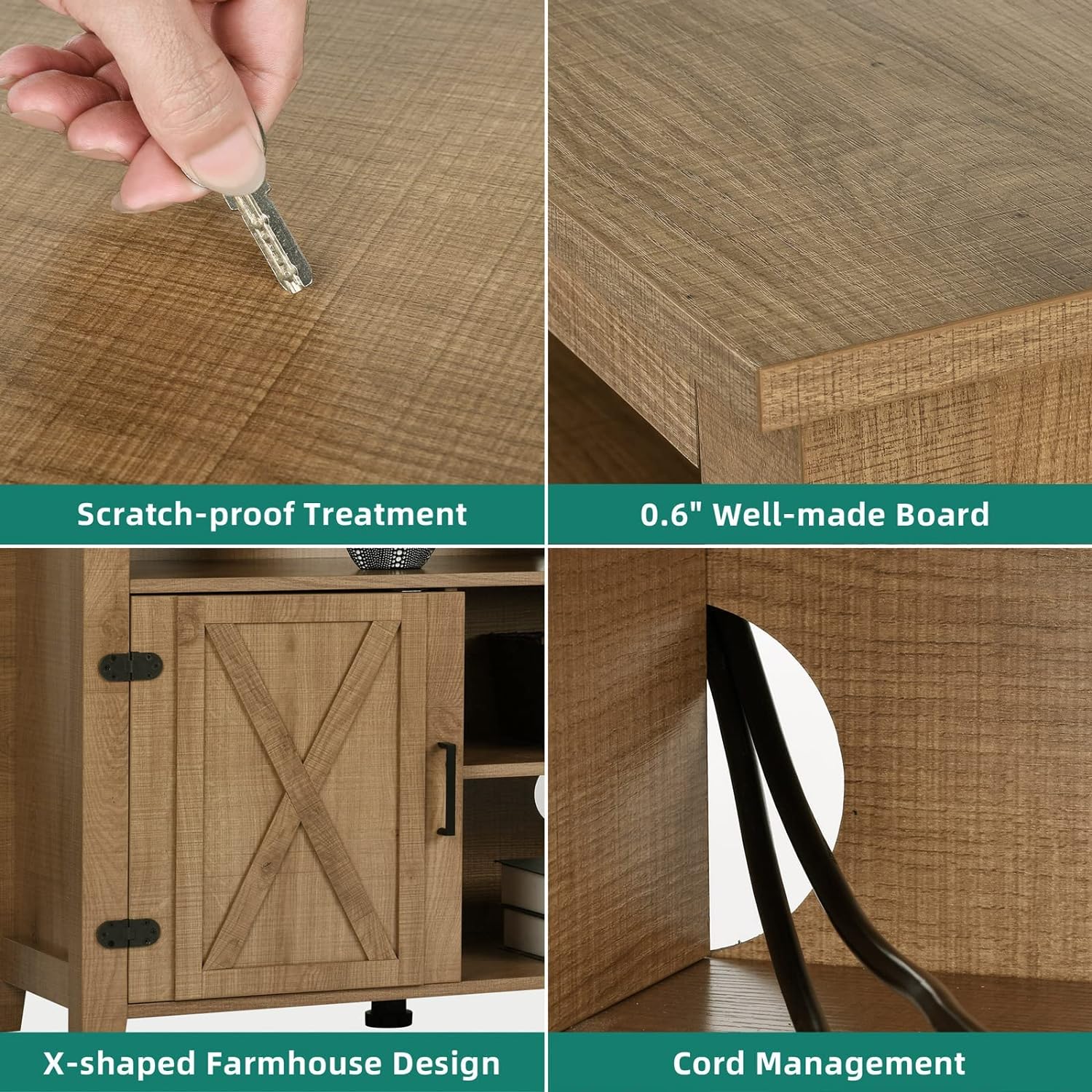 STURDY FOR 300 LBS AND SCRATCH PROOF: We added 2 black support legs under the TV cabinet, this TV console works quite firmly and does NOT wobble at all once assembled. The top of the cabinet can support up to 300 pounds. The farmhouse TV cabinet is made of well-made P2 MDF and sturdy metal with high-level wood grain, which is scratch-resistant and waterproof.
