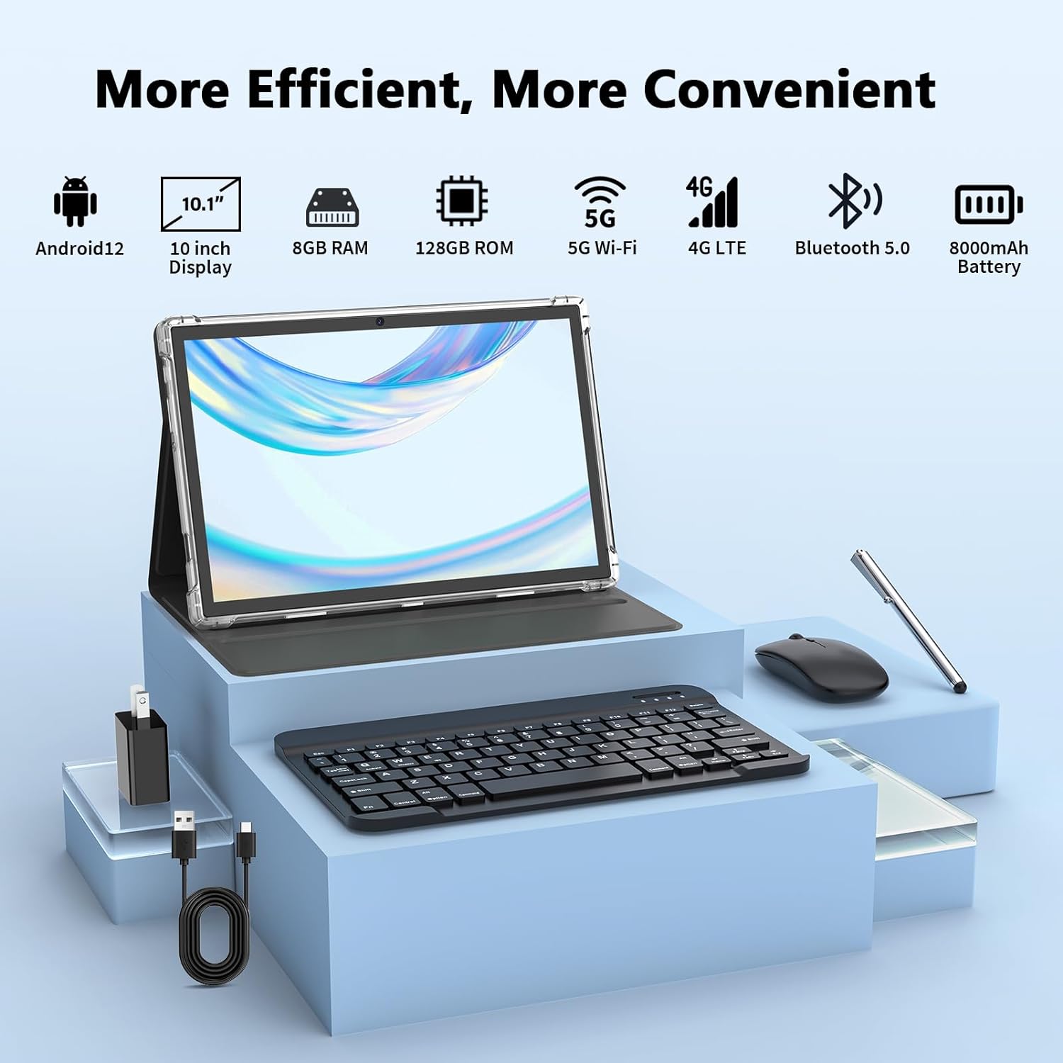 【2 in 1 Portable Tablet】The 10-inch tablet has a professional working mode. With a keyboard and mouse that allow you to seamlessly switch between tablet and laptop mode. The tablet case ensures that the tablet is kept safe from scratches and bumps. It is an ideal device whether for working, studying or playing. Good gift for colleagues, students, writers and businessmen.