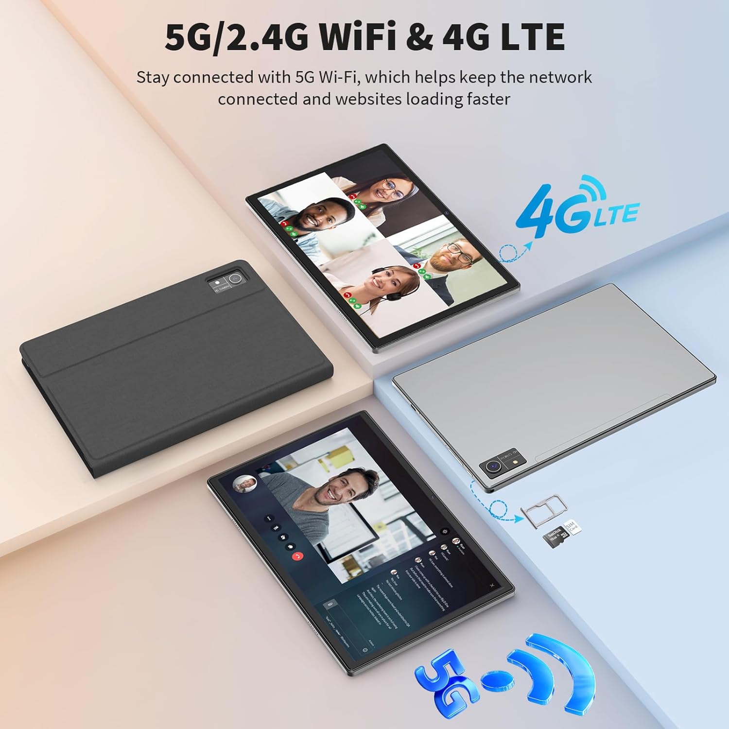 【2.4G and 5G WiFi+8000mAh】The Android tablet lets you enjoy ultra-fast internet speeds with 5G WiFi connectivity. It makes it easy to stay connected on the go, providing a more convenient experience for entertainment, browsing, gaming and shopping. It also comes with an 8000 mAh battery that lasts up to 16 hours on a single charge, perfect for commuting and long-distance travel.