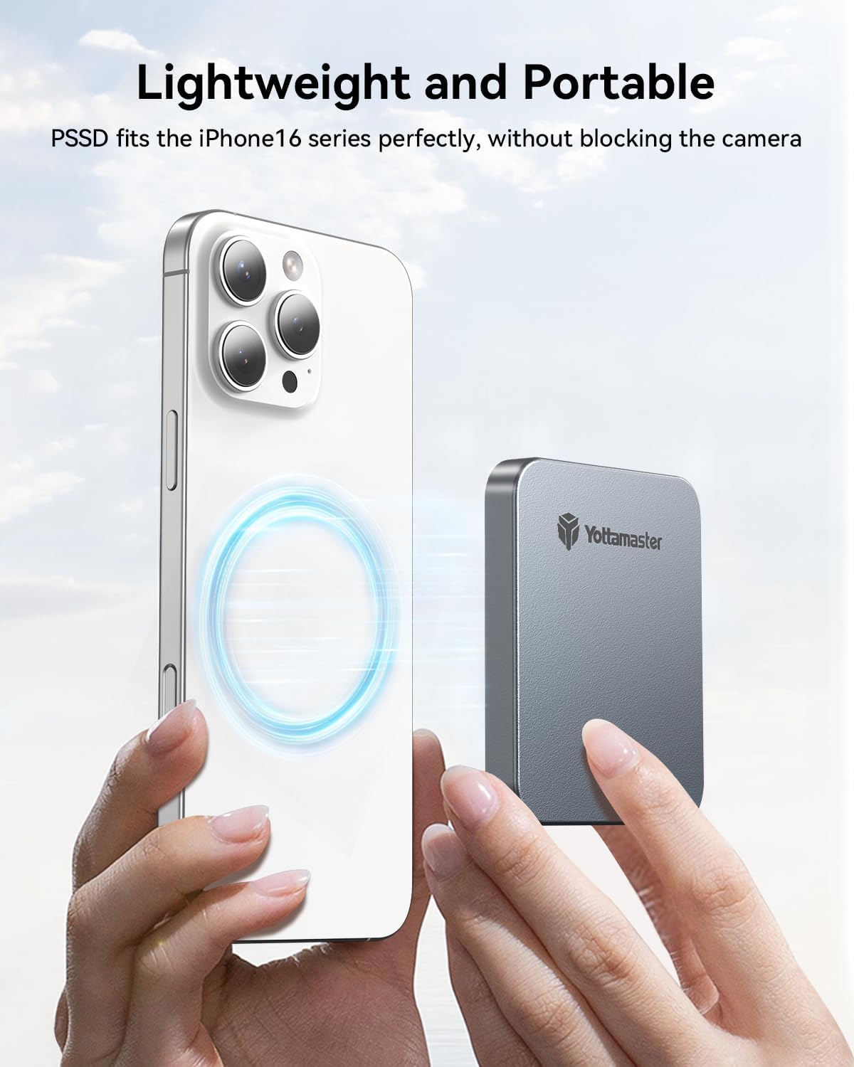【Magnetic design】 PSSD can be attached directly to iPhones and telephone cases with MAGSAFE support, and also includes a magnetic ring for the accessory to devices and boxes without incorporated magnets. This makes it the ideal option for mobile photography enthusiasts, which allows you to store a large number of high -resolution photos and videos at any time, anywhere, perfectly combining portability and efficiency.
