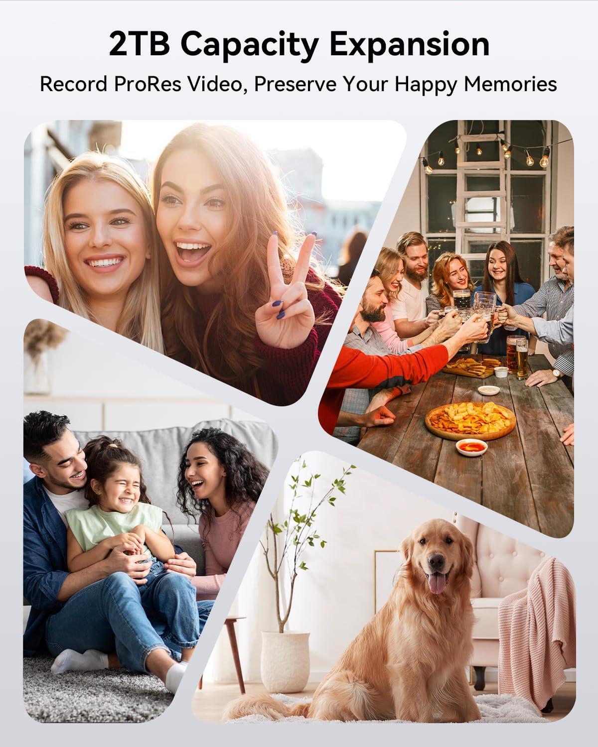 【Admit the 4K Prores Video recording】 The magnetic external solid state unit admits the 4K Prores Video recording on the iPhone 15/16 Pro/Max. It allows recording and storage in real time without the need for a secondary transfer, which allows you to capture beautiful moments in your life at any time.