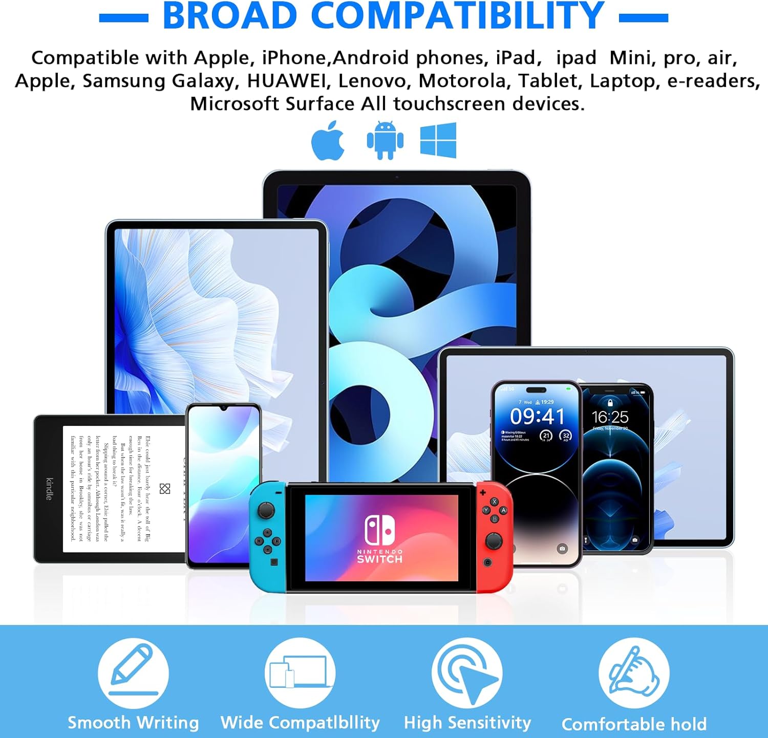 【Universal Stylus Think】 Stylink Stylus Think For Touch Screens Are Wide Use For Android, IOS, Windows Devices, The Stylus Pen for Ipad, iPhone, iPad Mini, iPad Air, iPad Pro, Apple Pen, Motorola, Phone Stylus Pen for iPhone, Cell Phone, Samsung Galaxy , Tablet Stylus Pen for Touchscreen, Tablet, Amazon Fire Tablet, Lenovo, Touch Screen laptops, computer and PC, Chromebook, Nintendo Switch, e-rers, Kindle Ect, Samsung Galaxy Z fold 3 4 5 /Galaxy Tab A9, S9, A9 Plus Note 9 10 20, S22 S23 S24 Ultra Stylus Pen S Pen. Use a tablet pen on all devices with touch screen.