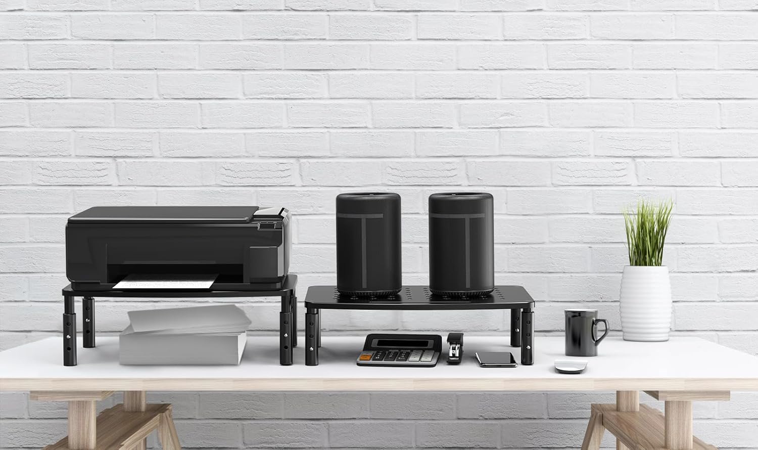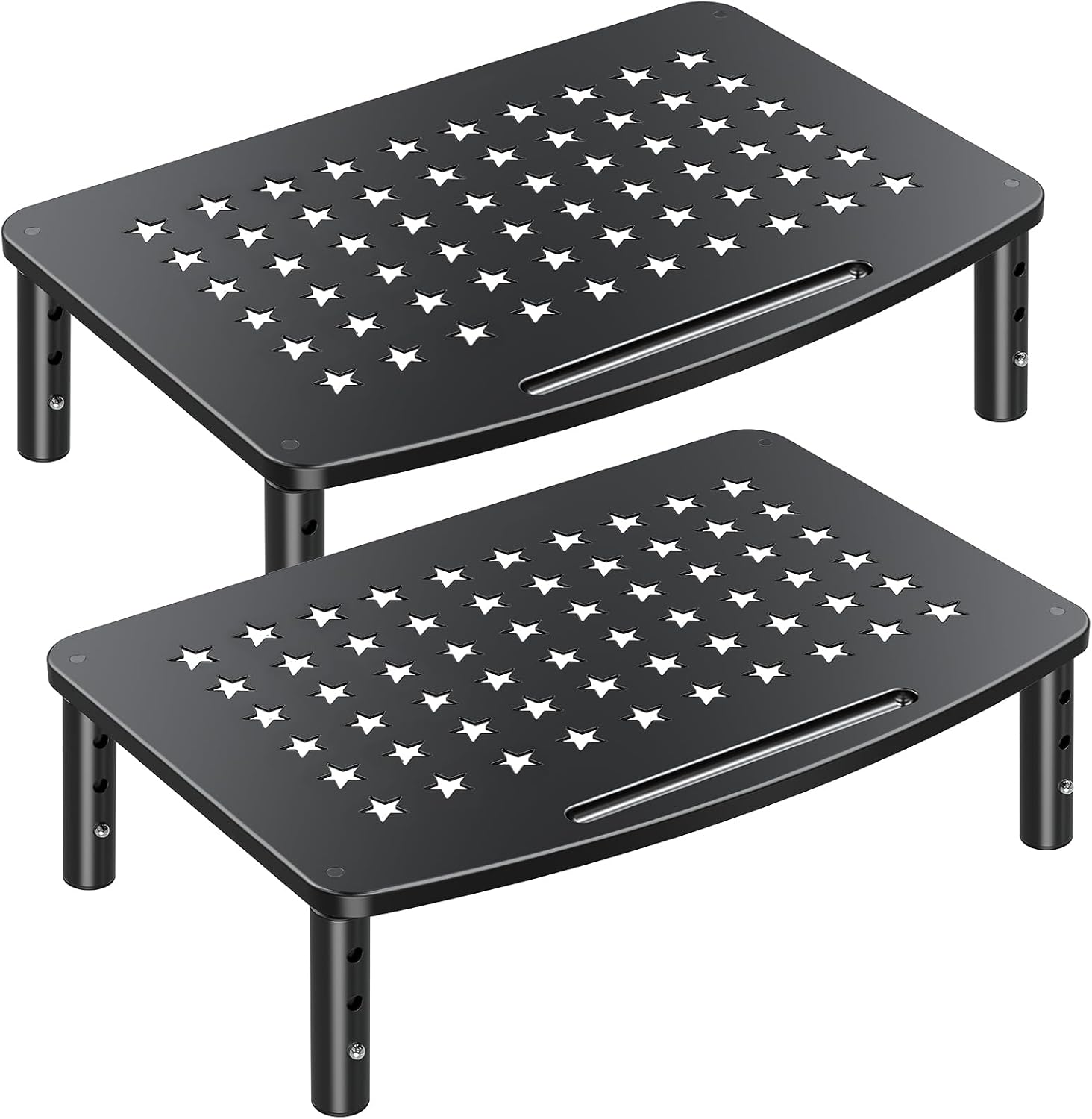 Rotated and Refiedio: The 2 -pack monitor support is made of durable metal, resistant enough to contain up to 44 pounds (19 kg) of weight. It comes with a 14.5 x 10 inches size platform, the monitor elevator is suitable for most devices, such as laptop, computer screens, printer, speakers, telephone, etc.