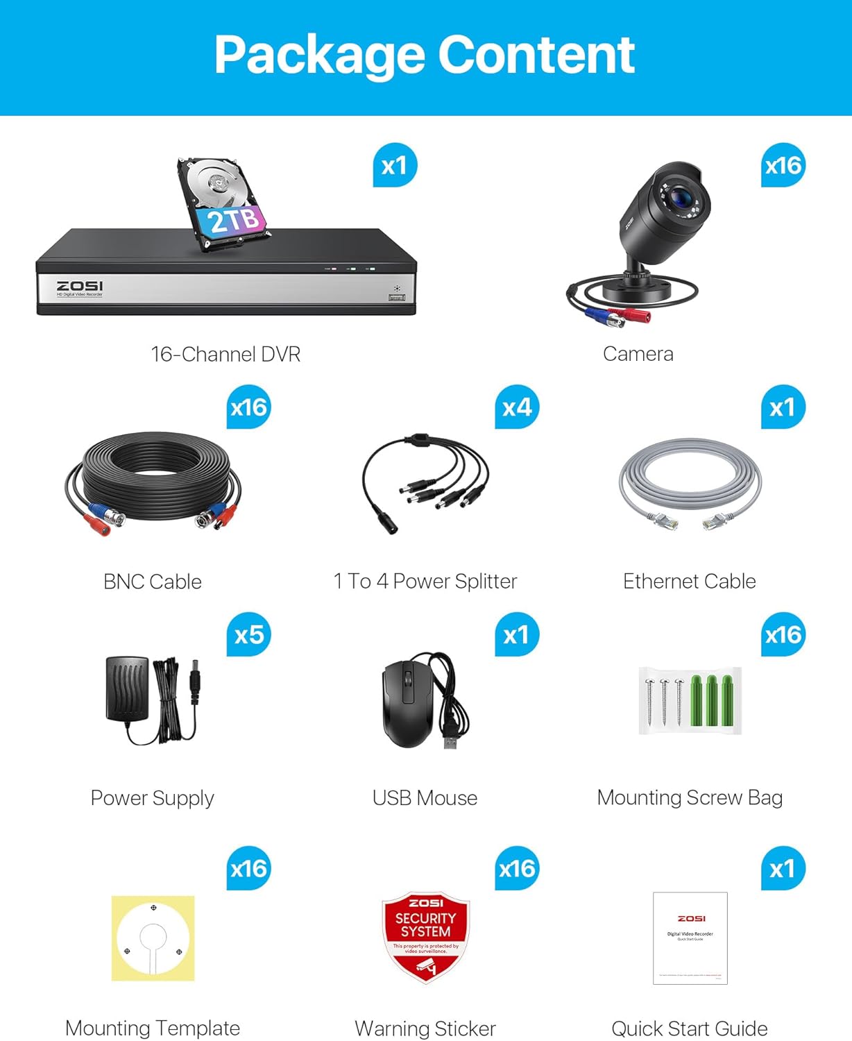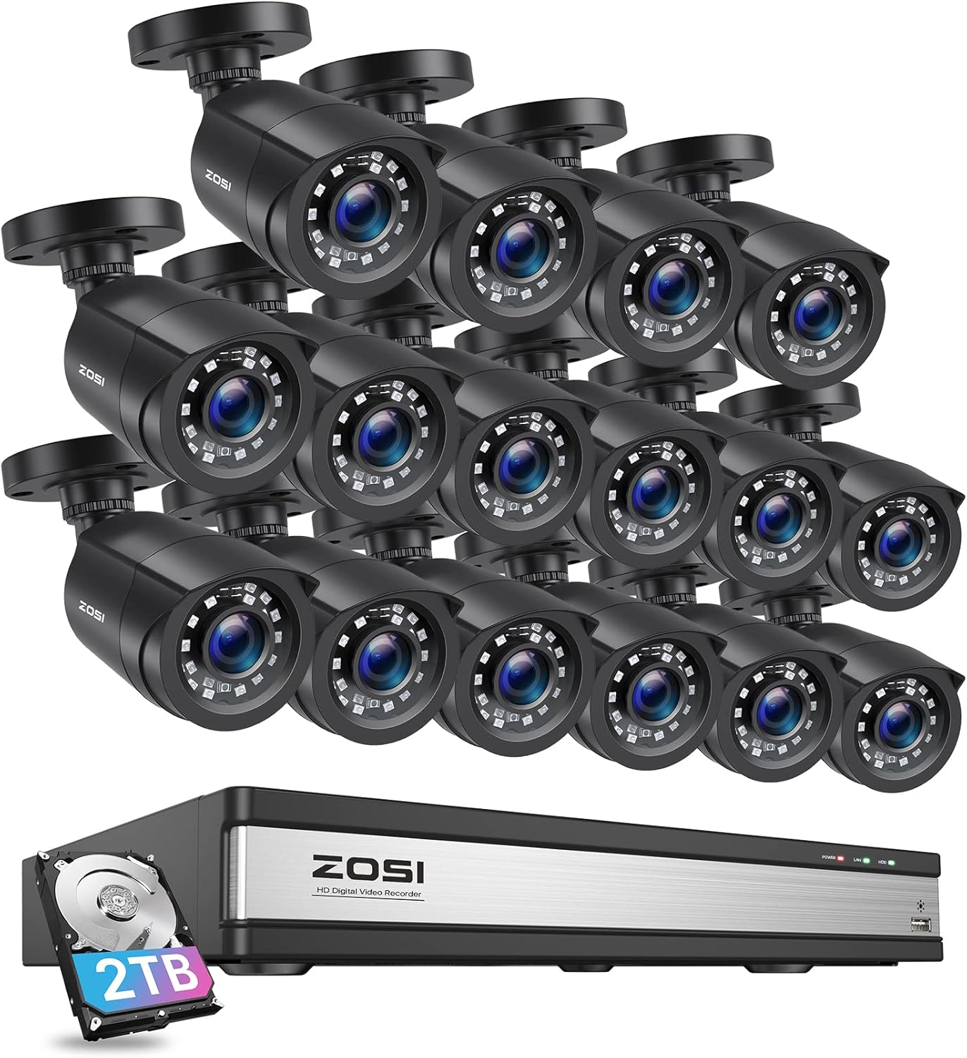 ZOSI Security Camera System Add to Cart Customer Reviews 4.3 out of 5 stars 1,573 4.3 out of 5 stars 1,379 4.1 out of 5 stars 375 4.2 out of 5 stars 432 4.1 out of 5 stars 8 Price $20.74$20.74 $348.29$348.29 $512.99$512.99 — $559.99$559.99 Connection Type BNC Cable Power over Ethernet Power over Ethernet Power over Ethernet Power over Ethernet DVR / NVR / NVR 8 Channel PoE NVR 8 Channel PoE NVR 24 Channel PoE NVR 24 channel PoE Camera 1 bullet camera 4 cameras PoE 6 cameras PoE 8 PoE Cameras 8 PoE Cameras 1080P Resolution 4K 4K 4K Pre-Installed 4K Hard Drive / 2TB Security Hard Drive 2TB Security Hard Drive 4TB Security Hard Drive 4TB Security Hard Drive Night Vision 80ft 100 feet 100 feet 100 feet 100 feet