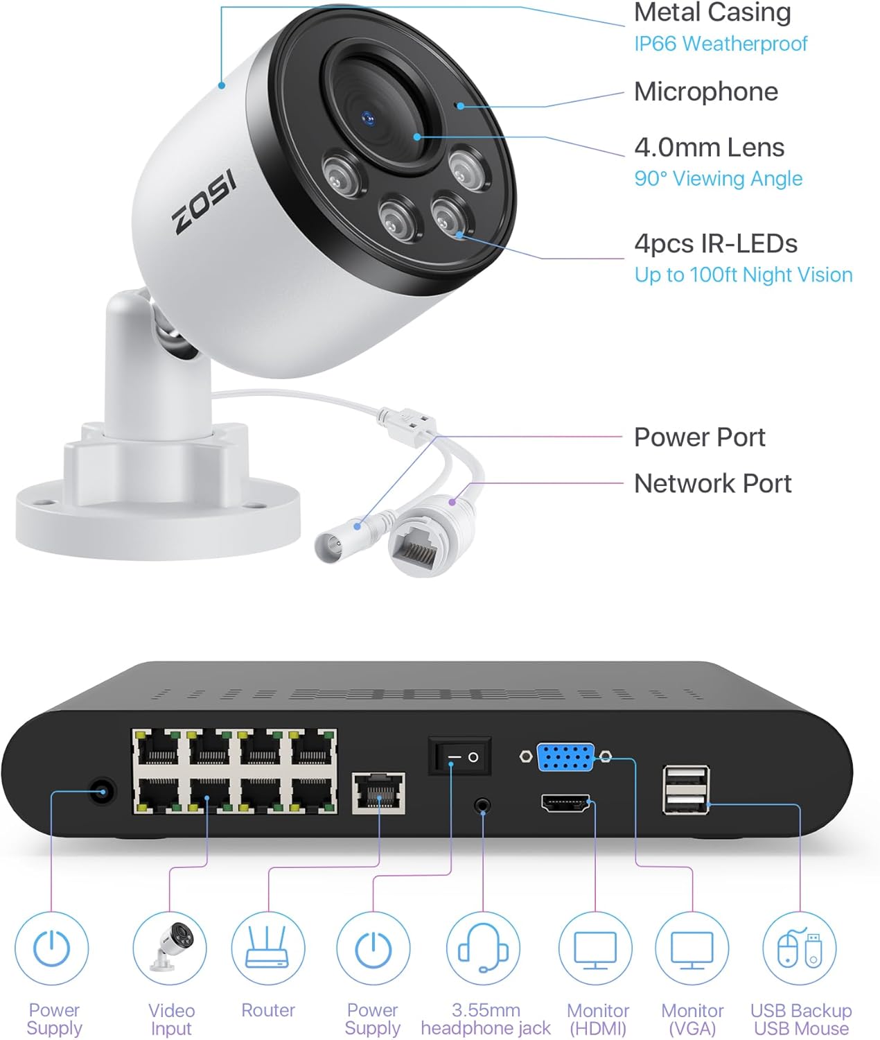 ZOSI 8CH PoE Camera System