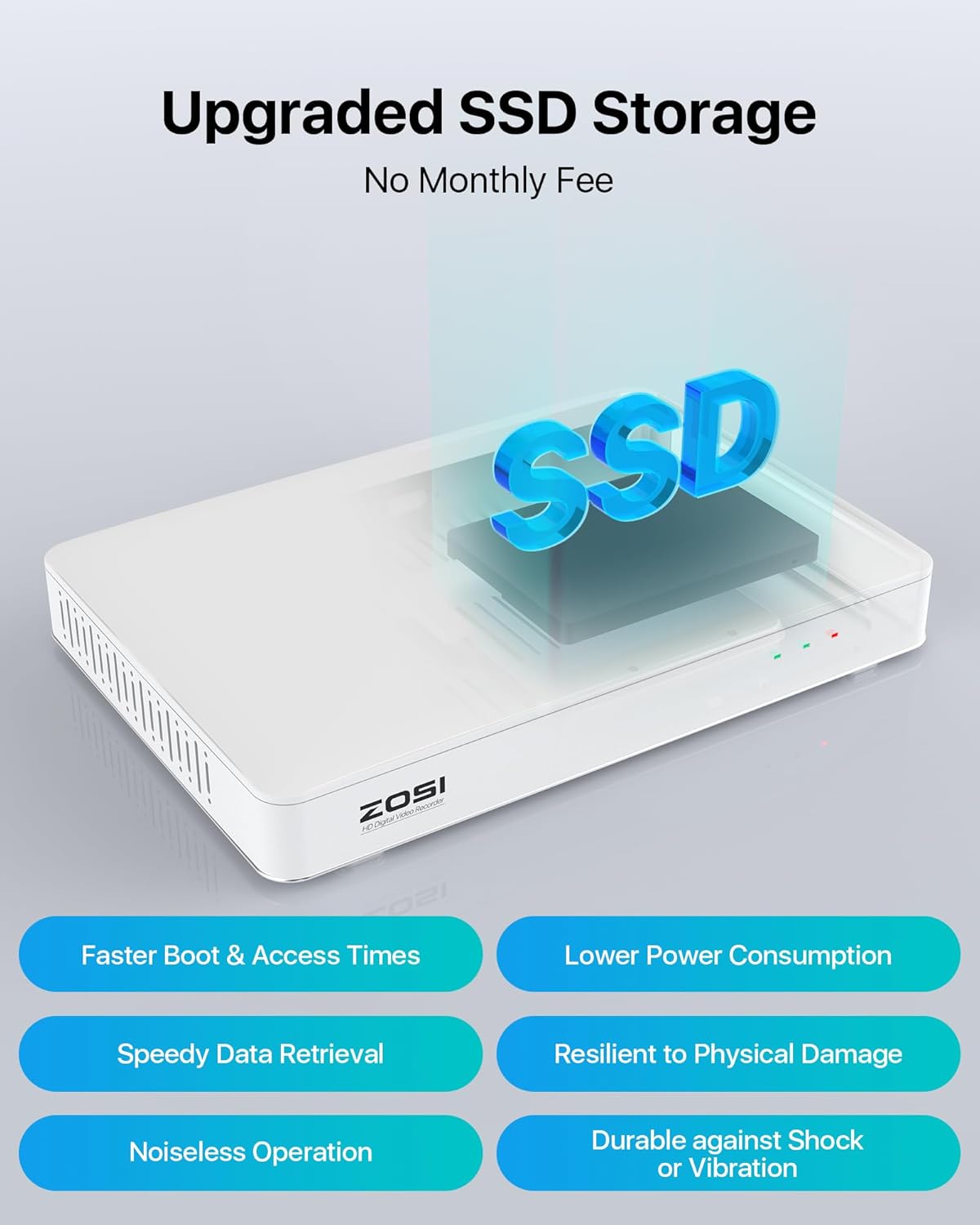 The DVR comes equipped with a new SSD, ensuring faster access and secure data management.