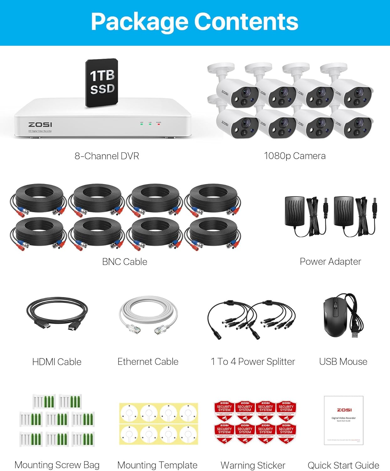 ZOSI Security Camera System Add to Cart Add to Cart Add to Cart Add to Cart Add to Cart Customer Reviews 3.9 out of 5 stars 88 4.2 out of 5 stars 634 4.1 out of 5 stars 274 4.3 out of 5 stars 558 4.0 out of 5 stars 135 Price $23.99$23.99 $377.99$377.99 $789.99$789.99 $799.99$799.99 $1,299.99$1,299.99 DVR/NVR/8CH PoE NVR 16CH PoE NVR 16CH PoE NVR Cameras camera*1 4K PoE camera*4 4K PoE camera*8 4K PoE camera*8 4K PoE camera*16 Resolution 1080P 4K 4K 4K 4K Audio One-Way Audio Two-Way Audio Two-Way Audio Two-Way Audio Two-Way Audio Night Vision 80ft 100ft 100ft 100ft 100ft Motion Detection ✔ ✔ ✔ ✔ ✔
